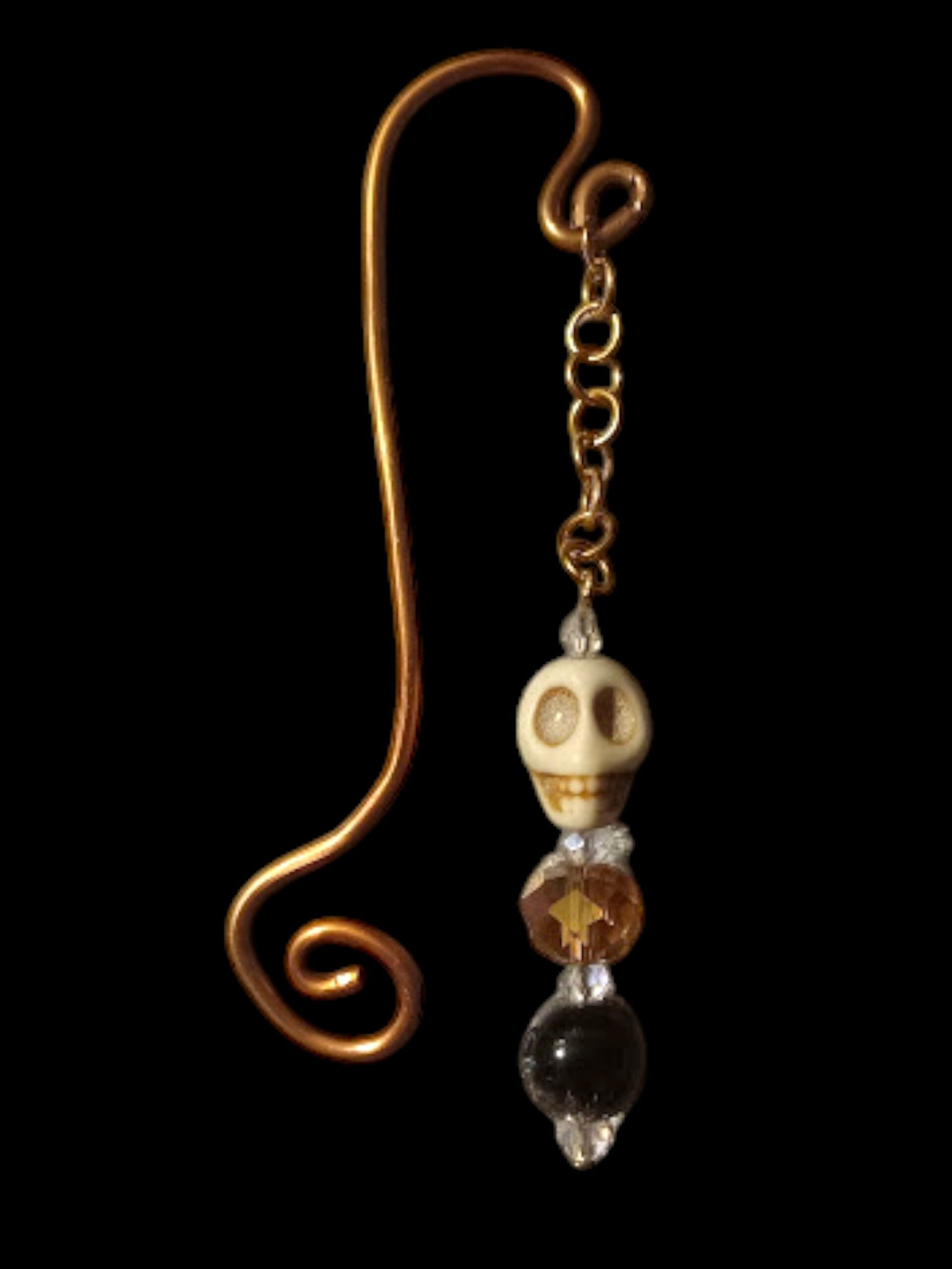 Each bookmark is handcrafted from thick-gauge copper wire, shaped by hand for strength and beauty. A delicate chain dangles suncatcher beads that shimmer with every movement — turning even the act of reading into a moment of light and color.